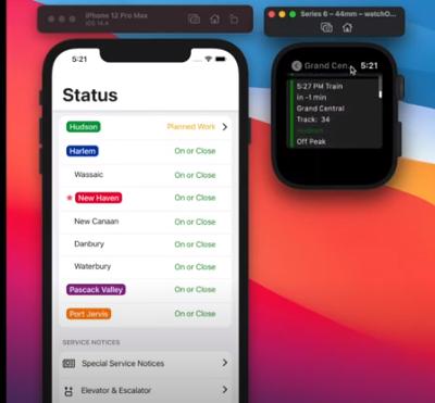 紐約大都會捷運局(MTA)都市北鐵路宣布將在蘋果手錶上推出與其應用程序「火車時刻」(Train Time)配套的應用,當乘客的蘋果手錶與已經下載的「火車時刻」配對,則配套的應用程序會自動植入蘋果手錶,讓乘客在旅途中更方便獲取列車信息。