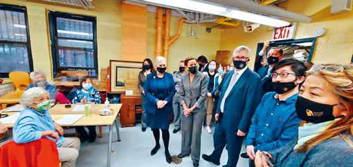 在紐約市發現Omicron變種後,為了鼓勵亞裔注射加強疫苗針,聯邦參議員陸天娜、國會議維樂貴絲,州議員卡凡納、曼哈頓區長高步邇6日同前往麥迪臣社區服務中心,鼓勵華人接種疫苗並討論亞裔社區面臨的問題。參議員陸天娜參觀中心各項設施,會見了華人社區成員,並且一同打球作樂。