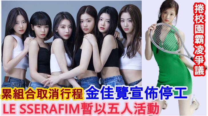 HYBE雖然一再否認金佳覽曾經霸凌同學,又指金才是受害人,但事件在韓網鬧得沸沸揚揚,HYBE與Source Music終在今早聯合發聲明宣佈LE SSERAFIM取消亮相今日的音樂節目《Music Bank》,金佳覽會暫時中斷工作,組合暫以五人形式進行,於後日(22日)的《人氣歌謠》開始,並表示:「公司將於調查後盡快發布對成員爭議的說明。」