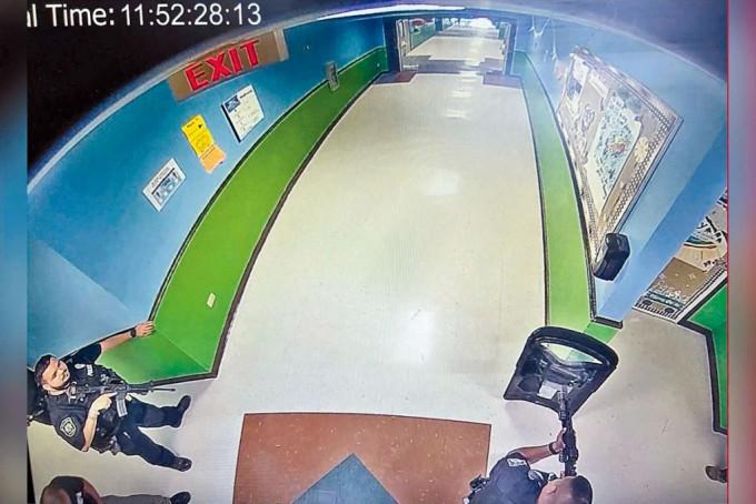 (星島日報報道)美國德州尤瓦爾迪羅伯小學上月發生校園槍擊案,首批閉路電視影像曝光,顯示當時警察在學校走廊呆等而不採取行動。據看過調查文件的媒體稱,警員在五月二十四日當日頗早時間到達校內,但仍要等逾一小時才衝入槍手身處的教室。槍手於上午十一時三十三分進入學校,稍後十一名警察於三分鐘內到達。到十一時五十二分,一名帶着防彈盾牌的警察也來到校內。但這批攜步槍等武器的警察要等到中午十二時五十分才破門進入槍手所在的教室。此案最終有十九名學生和兩名教師遭槍手殺害,十八歲槍手拉莫斯遭警員擊斃。警方一直被狠批未能迅速行動制止襲擊。受害者的父母周一呼籲學區警長阿雷東多辭職。
