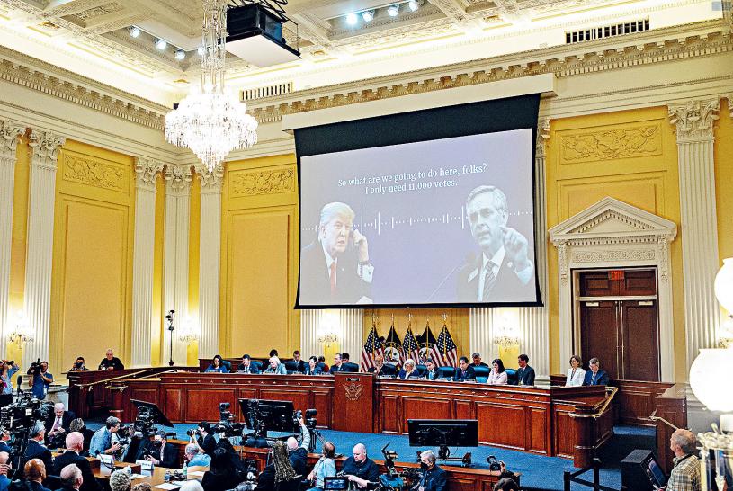 在21日的聽證會上,委員會播放了2021年1月2日的電話錄音,當時特朗普致電喬州州務卿拉芬斯伯格(Brad Raffensperger),要求他額外「尋找」11780張選票,讓他在普選票方面反超當時的民主黨候選人拜登。特朗普質疑拉芬斯伯格無意發掘「正確的答案」,反而一直堅稱當地的點票結果正確。