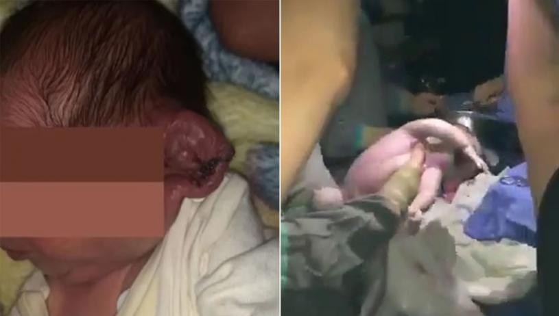 烏里贊迪嚎哭着懇求醫生停止手術,然而手術還是在昏暗的燈光下進行,醫護人員高舉手機為醫生照明以取出嬰兒,「幾分鐘後我聽到BB在哭,我以為他們打算把BB抱到別處,但沒有,過了一段時間,我就問他孩子怎麼了」,她聽到兒子哀號心急如焚,但始終沒有人回應她,最後還是丈夫在她術後告訴她噩耗。原來醫生聲稱取出男嬰索利斯(Juan Adriel Solis)後,在其耳側發現了血管瘤,想幫他移除。但在移除時由於光線不足,醫生一刀下去就把索利斯左耳的一部分一併被切除了,他的耳朵從耳廓向耳孔被橫著割開,頭部亦受傷口影響腫脹起來。現時索利斯已回家休養,耳朵的裂口也被縫合好,皺巴巴地摺疊著,擇日將進行聽力檢查。