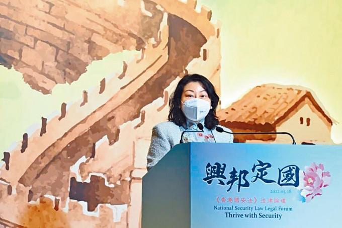 她認為,上述種種均顯示公眾或對本港憲制地位、《憲法》與《基本法》的關係、國家安全的概念、國民意識、甚至法治等了解不足。有鑑於此,律政司前年啟動「願景二○三○——聚焦法治」十年計畫,旨在透過校園講座等教育工作宣揚正確的法治觀念,希望能讓年輕人由小至大都有一個「依法、守法、明法、傳法」的概念。