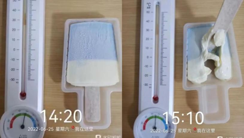 內地微博近日流傳,指一名網民將一款雪糕外露在攝氏31度室溫,1小時後雪糕竟然不會融化,引起討論。有關雪糕品牌其後回應,強調產品合乎國家標準。