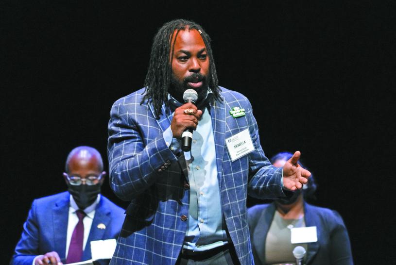 在候選人論壇中,斯科特承諾如當選,將把全市警員總數提升至900人,還指出目前911報警熱線,有20%的電話沒有機會被接聽。他希望合理分配預算來解決問題。他認為需要保障所有居民的安全並改善生活質量。」
