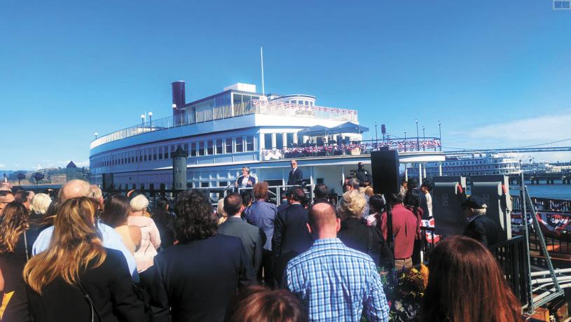 三藩市近百歲的渡輪克拉瑪斯號(Klamath)昨日重新開放,今後這艘白色輪船將停靠在三藩市海旁,成為灣區委員會(Bay Area Council)總部,並將向公眾開放。灣區各界領袖周三為克拉瑪斯號重新開放剪綵。