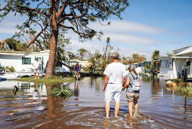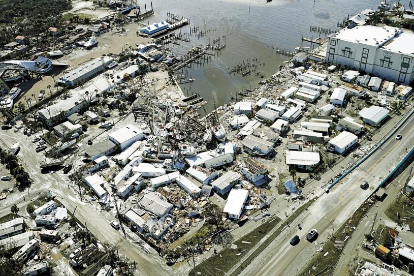 在重災區邁爾斯堡(Fort Myers),市中心一度水浸深達4呎,96%用戶停電。隨著洪水漸漸退卻,可見到昔日的熱帶天堂面目全非,不少房屋被夷為平地;沿岸樹木被連根拔起;大量船隻被沖上岸;也有碼頭被沖毀,廢墟中發生零星火警,不少災民見到家園盡毀都欲哭無淚。