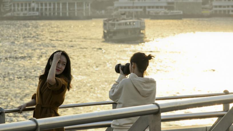 在中環碼頭自動氣象站望向東面拍攝的照片。天文台