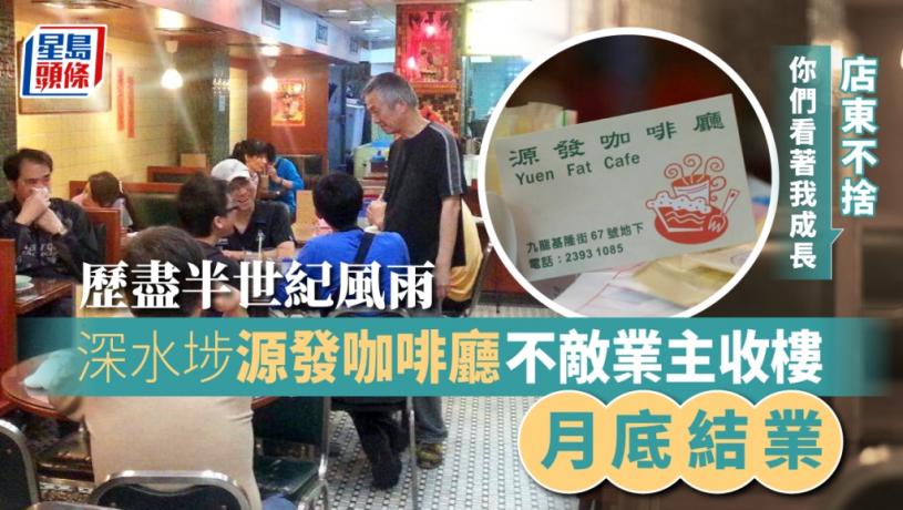 在深水埗基隆街經營逾50年的源發咖啡廳宣布,由於敵不過業主收樓,因此將於本月底結業。