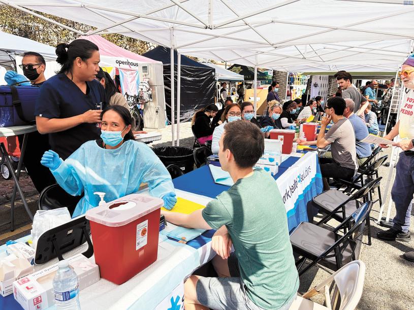 值得一提的是,街會還設有免費注射猴痘疫苗的攤位,可注射第一劑或第二劑,兩劑疫苗需要間隔28天。LGBTQ團體是猴痘重點高發社區,現場大排長龍等候接種。
