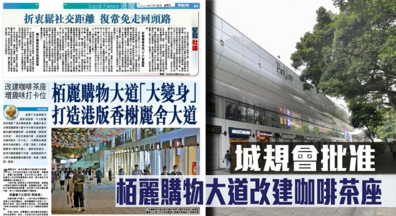 尖沙嘴栢麗購物大道今年中曾向城規會申請改劃作擬議食肆(自助餐廳、咖啡室及茶室)及商店及服務行業,並通過增加趣味點及「打卡位」以應對社會經濟和市場的變化,以打造「港版」巴黎香榭麗舍大道;最新該項目今日在城規會審理時,獲該會在有附帶條件下批准。