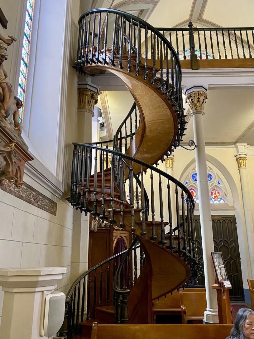 走不遠處是著名的Loretto教堂。著名之處是教堂內有一神秘樓梯,沒有人知道是誰建造,也不知道木材的來源,更不能解析為何三十三級樓梯可以沒有一顆螺絲釘及之柱。世界上沒有一位科學家或建築專家能提供答案。我就覺得是奇蹟了!當天我們安靜坐在教堂,看著這樓梯的確感到不可思議。