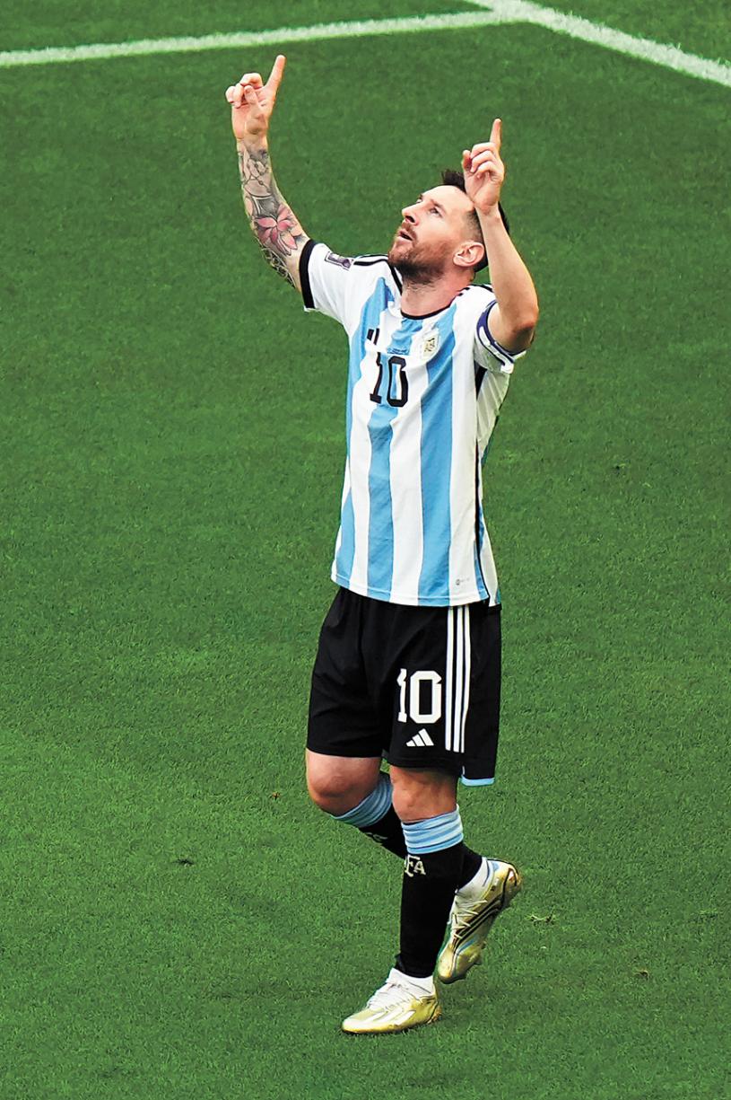 終場哨響,美斯露出比四年前更燦爛的笑容。他帶領隊走向場邊,與到場的阿根廷球迷一同高歌。看台上,不少人舉著他的頭像,還有馬勒當拿的頭像。憑藉這場比賽,美斯以21次世界盃出場,追平馬勒當拿保持的阿根廷球員紀錄;同時以8粒進球,追平老馬的世界盃進球數。
