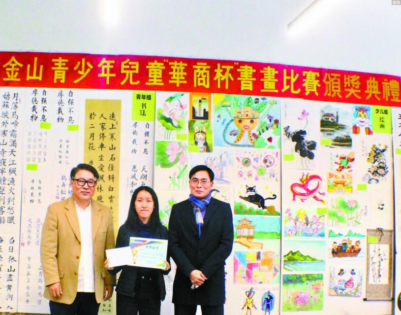 美國華商總會主辦的第二屆舊金山「華商杯」青少年兒童書畫大賽頒獎典禮,於11月20日在華埠文化媒體合作社隆重舉行,圓滿成功,口碑甚佳!華商總會會長孫志雄、常務副會長孫志中伉儷、副會長林志強、前會長張福明、辦公室主任廖嘉敏、理事羅志秋及余志剛、顧問譚紀任及吳卓潮、會員梁泳紅及李煥光等,還有三藩市中文學校聯合會會長徐世強、駐美中華總會館通事劉榮浩、岡州總會館主席黃國康、華聯商會會長羅世傑等嘉賓,及舊金山四所中文學校校長、勞苦功高的評審團成員、參賽的學生及陪同的家長等,逾一百多位出席頒獎禮,在海外傳承中華文化,收到預期的效果。