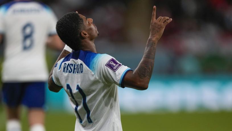 今場擔任正選的拉舒福特光芒四射,先罰球直射入網,之後再入一球,助英軍三蛋贈威爾斯,首名晉級十六強。這名廿五歲射手攻入第一球後,激動跪地並雙手指向天。
