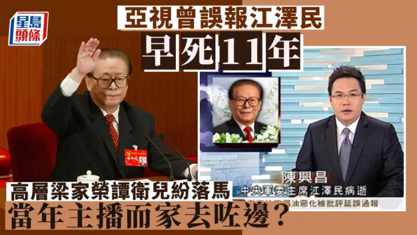 官方公布,前國家主席江澤民今日(30日)中午因白血病逝世,享年96歲。對於一眾港人而言,亞洲電視曾於2011年誤報江澤民死訊,引起一時轟動,最後導致高層梁家榮、譚衛兒離職。不過,事件似乎未影響他們在傳媒界發展,其中梁家榮更曾出任廣播處長。