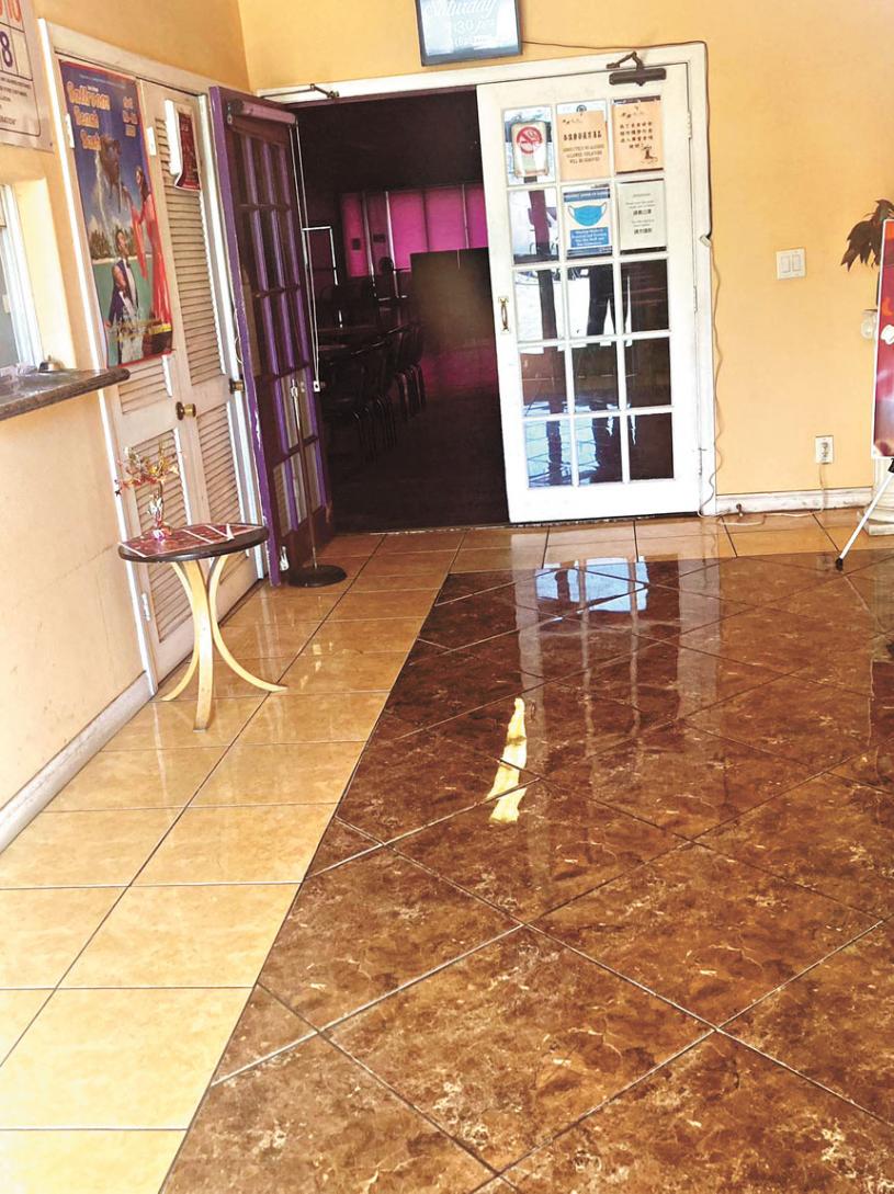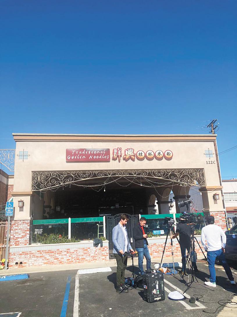 要進入舞星舞廳,先要經過一家桂林米粉店。而這天,桂林米粉店的鐵柵欄門也已關閉,無法從這家店進入舞廳。舞廳前面的停車場,也被警戒線圍起來,車輛無法駛入。