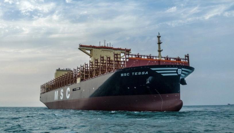 一艘由中國船舶集團公司建造的全球最大貨櫃輪日昨在浙江寧波舟山港開啟首航,這艘名為「地中海泰薩」(MSC TESSA)輪總長399.99公尺,比目前最大的福特級航空母艦還要長約64公尺。它比去年建成的同樣尺寸屬於長榮海運的長益輪(Ever Alot)還要多出112個貨櫃艙位,因此取代長益輪成為新晉的全球最大貨櫃輪。