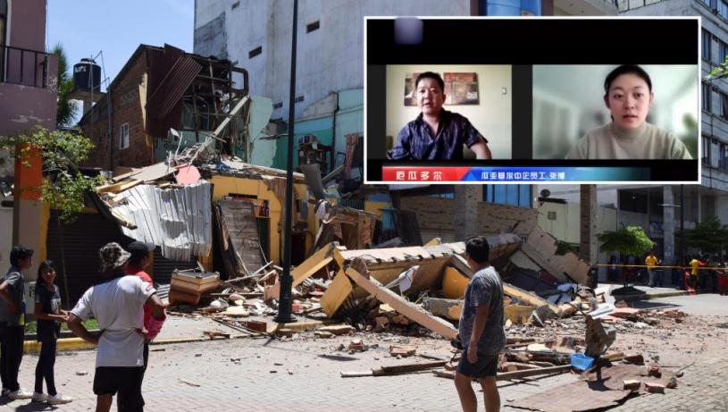 有在厄瓜多爾工作的中企員工表示,地震發生時,街上聚集了很多人群,同時還看見街邊的高樓發生明顯晃動,有外牆、玻璃碎片掉落。地震持續了兩分鐘左右