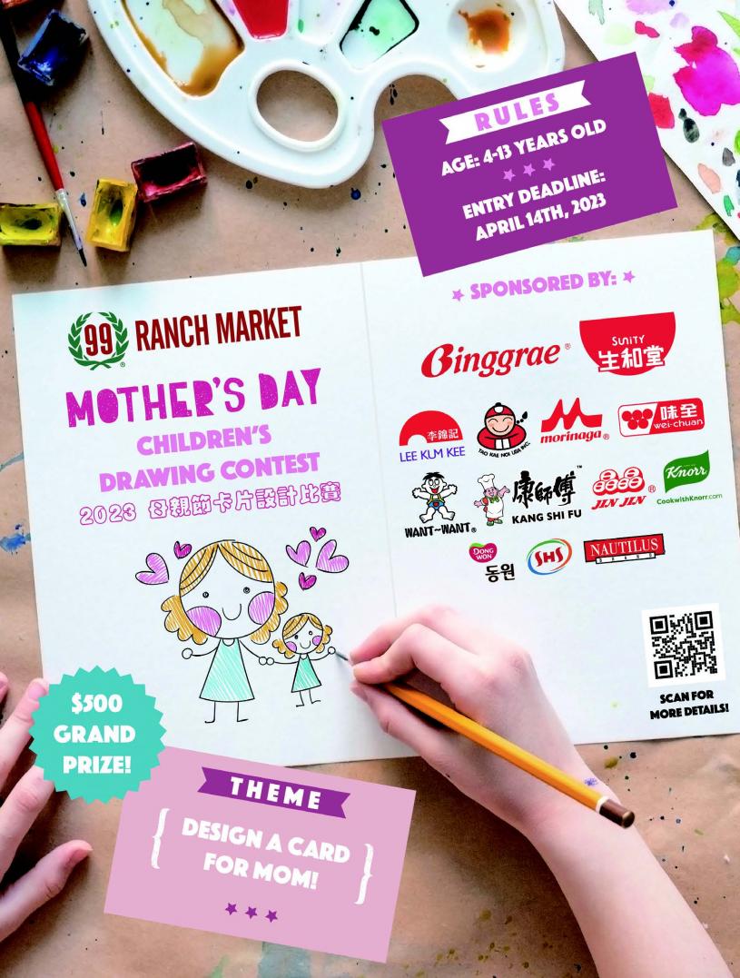 隨著春天一步步向我們走來,溫馨祥和的母親節也即將如約而至。大華超級超市藉由一年一度的母親節兒童繪畫比賽活動,鼓勵孩童以繪畫的方式,表達對母親最誠摯的愛與感激。今年繪畫主題是,“設計給媽媽的感謝賀卡”,讓小朋友們充分發揮想像力, 將對母親濃濃的愛意表達在圖紙之上。從即日起到4/14/2023,誠摯邀請所有小畫家和家長們到大華超市各門店免費領取報名表和畫紙參與活動。