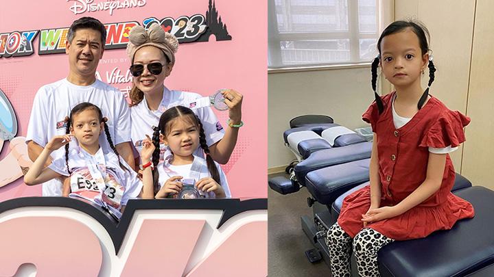 鍾麗淇今日(19日)一家四口參加香港迪士尼樂園相隔三年再舉行的跑步賽,這次他們選擇參與3公里賽事。鍾麗淇賽後於IG分享照片及影片,可見患有罕見病的12歲女兒Isabella坐在推車上參與比賽,Isabella表現得非常興奮,全程笑容滿面。鍾麗淇更上載了Isabella走路的影片,可見她與細女Michela一左一右細心扶着Isabella,畫面溫馨又有愛,不少網民都讚Isabella走路進步很多。