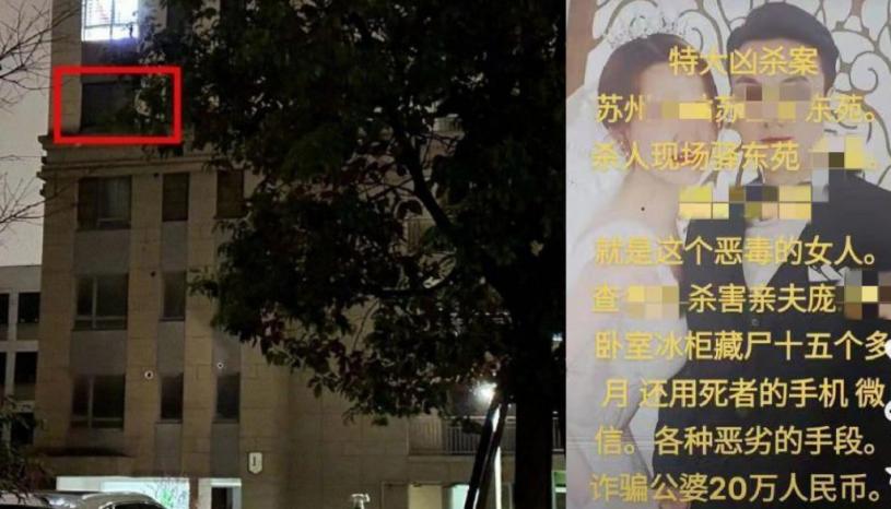 內地網絡昨日熱傳,蘇州姑蘇區驛東苑發生一宗殺夫藏屍冰櫃案。消息指,家住蘇州市姑蘇區驛東苑的查某,殺害親夫龐某,並利用雪櫃藏屍15個月,期間還用死者的手機發微信。內地傳媒今日(19日)報道更多疑兇及死者的背景。