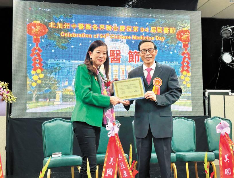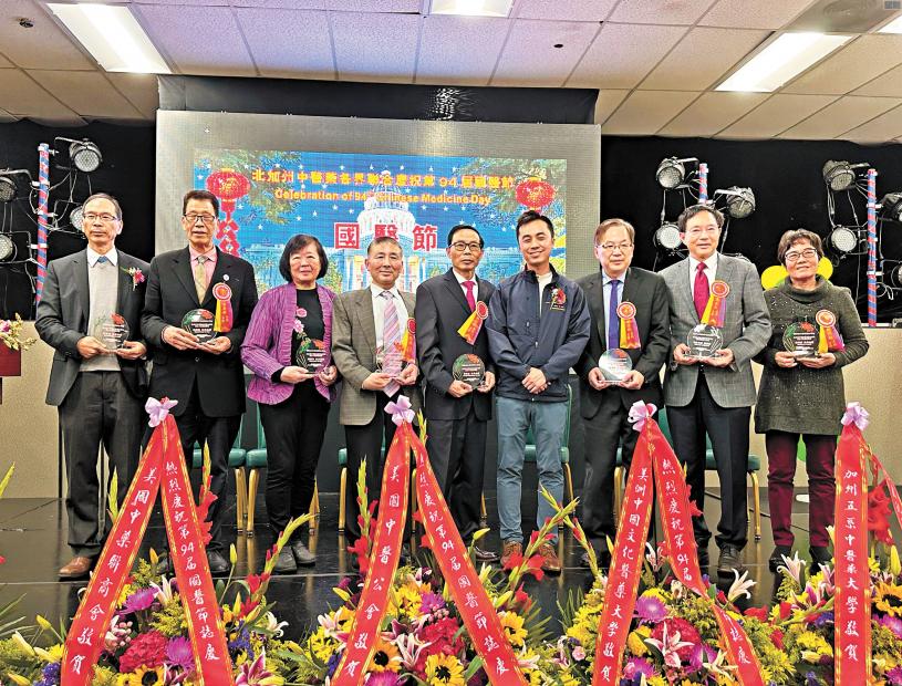 主辦單位向本屆國醫節的八位共同主席頒獎,表彰他們對北加州中醫藥界的貢獻和付出。他們分別為美國中醫公會會長薛初龍、美國中醫公會榮譽主席黃憲生、美國中藥聯商會會長劉源凱、美國中藥聯商會副會長戴博超、美洲中國文化醫藥大學校長種衍位、加州五系中醫藥大學副校長趙振平、國際醫藥大學校長王英秋、加州大學矽谷楊磊。本報記者洪郁欣菲蒙市報道