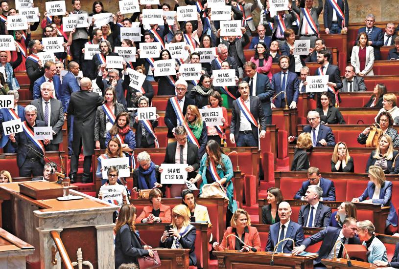 面對法國總理博爾內(Elisabeth Borne)16日於國民議會宣布動用憲法第49.3條,強制通過退休制度改革法案,反對黨依法提出不信任動議企圖反制,並在20日投票表決,其中獲跨黨派支持的議案以9票之差遭到否決,反對黨未能如願推翻政府、撤回法案。