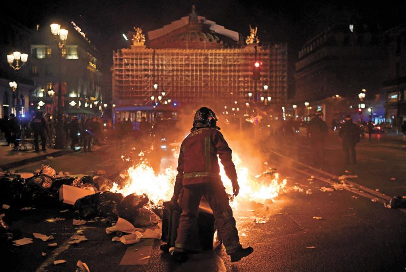 民眾對法案與政府推進方式的怒火持續延燒。20日晚間法國各大城市都出現自發性示威活動,巴黎市街道湧進抗議民眾,邊遊行邊高唱口號;大批警力戒備,以胡椒噴霧驅散示威者,衝突一觸即發。由於清潔隊員已罷工兩周,巴黎街頭堆積逾萬噸垃圾,正好成為示威者縱火材料。
