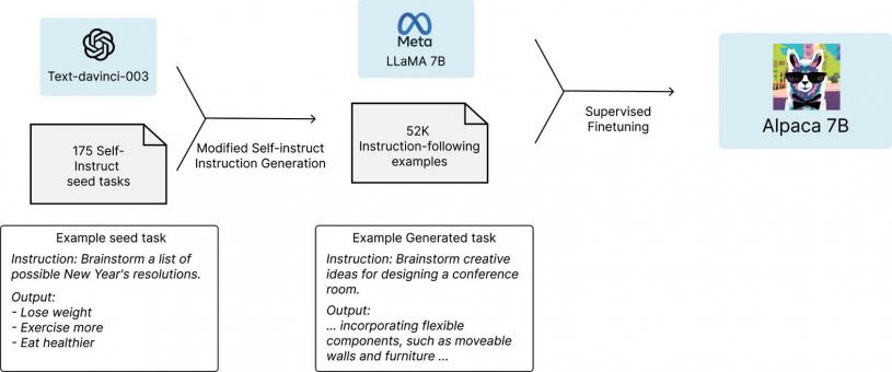 史大基礎模型研究中心(CRFM)宣布,其研究人員使用OpenAI的GPT API「微調」了Meta的LLaMA 7B大型語言模型(LLM)。他們用低廉成本創建出的Alpaca AI,表現出「許多類似於OpenAI的text-davinci-003(即GPT-3.5)的行為」。