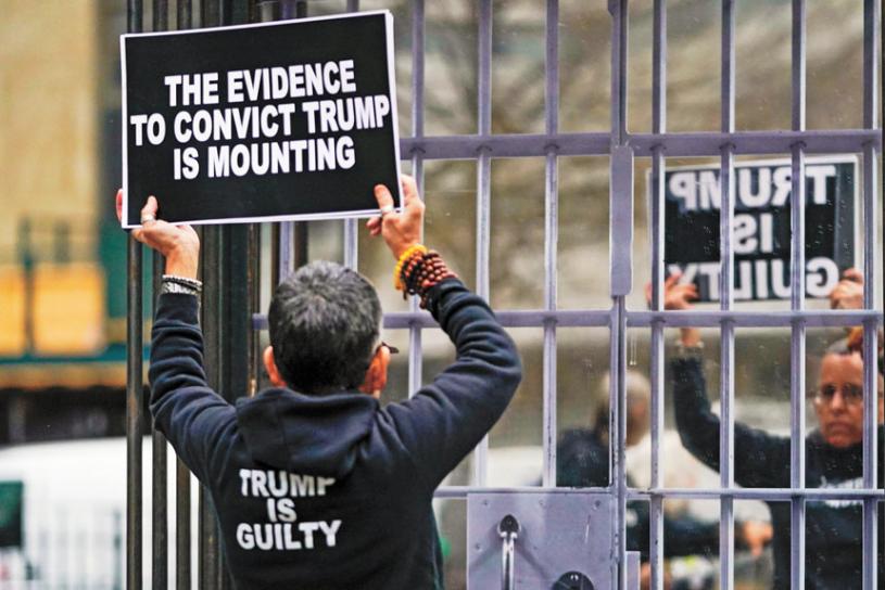 紐約曼哈頓法院的大陪審團23日雖然如期開會,但卻不是審理前總統特朗普的封口費一案,加上本周餘下時間都將休庭,意味著圍繞掩口費案,最快要到下周才知是否有人被捕及起訴。與此同時,特朗普再次在社交媒體發文,宣稱「他們要求我們和平,然而國家正在被人催毀」,令人質疑他可能暗示,聲援他的示威無需和平。