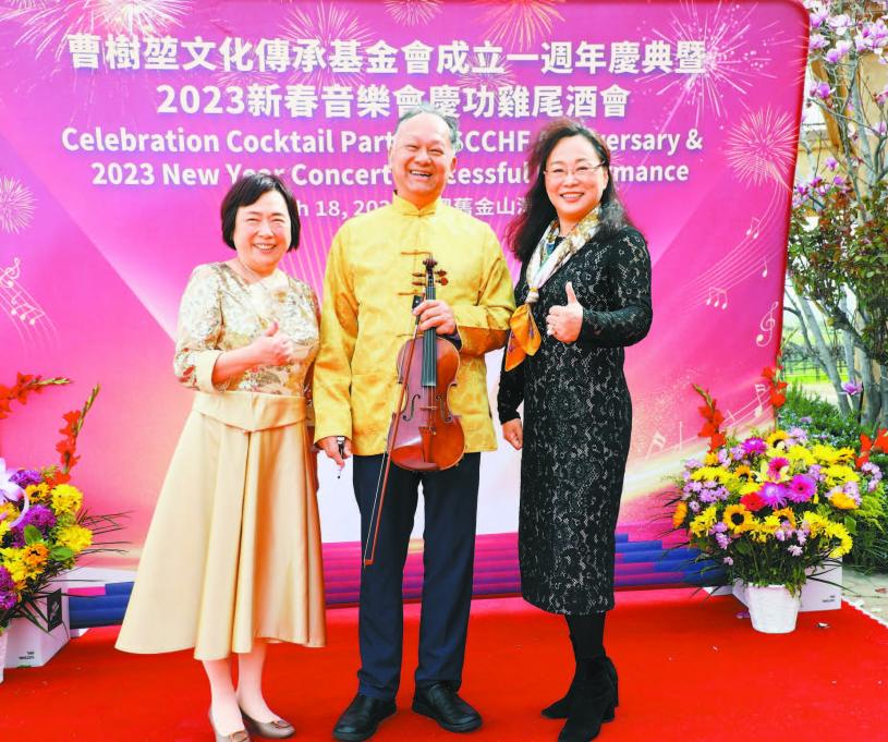 ( 特約記者葉坤玲報導 )曹樹 文化傳承基金會(如下簡稱基金會)成立-週年慶典暨2023新春音樂會慶功雞尾酒會,於3月18日中午在珂蔓酒莊(Clos De Mayo)隆重舉行,社會名流、樂壇精英、社區領導雲集,逾一百多位蒞臨,場面溫馨熱鬧。予會者品嘗高水準的中華美食外,還以中西樂器交融演奏及獻唱名歌為-體的演出方式,為大家帶來別開生面的聚會,留下美好的回憶!「後會有期」成為當天慶典落幕參與者期待之聲。慶典由駕輕就熟的黃姝及錢皓二位共同擔任司儀,首由基金會總裁崔博士( Cindy Cui)致歡迎詞及介紹到會嘉賓。她稱,「春華秋實,碩果累累」基金會僅面世-年,從弱到強,勤奮踏實地為社區做了大量的公益活動與文化傳承。為推動與豐富灣區的音樂發展與國際交流,我們又成立了基金會樂社,在舊金山總圖書館成功舉辦二場「西律東韻」音樂會及「中西樂韻‧歌情詩意」新春音樂會,好評如潮!本會雖然成立-年,但是也不忘行善,曾向多個社團捐款或捐贈樂器物品等,如捐贈10000美元予美國中藥聯商會在三藩市華埠建造中藥博物館;捐6666元予Sonoma市中國蓬萊亭項目建設;及向美西八和會館贈送價值達5000元的-把曹氏大提琴等,為不同領域的文化傳承與創新貢獻綿力。同時基金會終身榮譽主席曹樹 ,今年榮獲舊金山第70屆 出華人獎,還有部分會員也在電影節、提琴制作比賽等活動中榮獲大獎,人才濟濟。基金會並舉辦或參與灣區的聯歡慶會、社區論壇、養生健康之旅等項目,及到各地探訪交流。成績面前,感謝所有關心和支持我們的各位朋友,感謝樂助我們的每位捐贈者及團體,更感謝每位義工參與及付出,有你們的陪伴,給我們動力與信心,基金會的聲譽才能不斷提升。崔博士並談及基金會今後的發展,要加強美中乃至全球各機構組織和個人的文化交流、傳承與合作是我們努力方向;提供藝術交流平台,舉辦音樂、文學、書畫、攝影等公益活動,從中發掘和培養更多更好的藝術領域的傳承者;突出重點,強化品牌,繼續扶持本地的藝術發展,發揮民間外交的獨特作用,為美中及全球的文化傳承與創新再立新功!讓我們「回首過去,不忘初心;展望未來,砥礪前行」