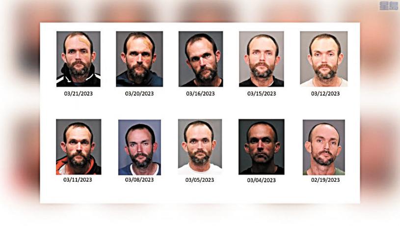 中加州佛斯盧縣克洛維斯市(Clovis)警方表示,當地一名男子在一個月內因各種原因先後被警方逮捕10次。