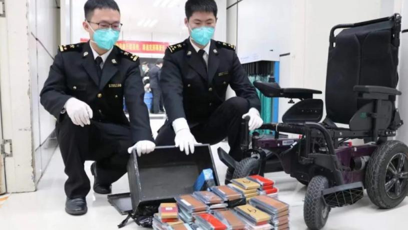 內地海關表示,當日該名旅客坐著電動輪椅從深圳灣口岸入境內地,經過海關監管區時神色異常。關員在檢查其電動輪椅時,發現有改裝痕跡,且重量與實際不符。X光檢查確定有夾藏物品後,關員對輪椅拆解查驗,在坐墊下方的電池箱中發現夾該批走私手機。