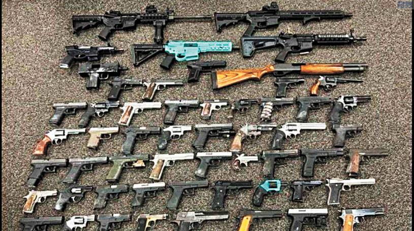 從以上房屋中,警方搜出了1.5磅冰毒以及62把槍,其中包括被清除序列號的「鬼槍」以及多把攻擊性步槍和全自動槍。