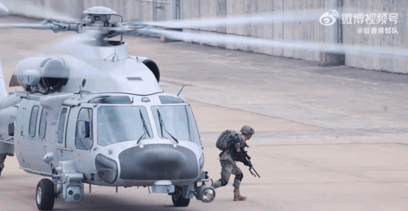 陸上機動梯隊其後從新田軍營出發,繞新界、九龍、港島進行巡邏,再與直升機編隊會合。解放軍駐港部隊微博