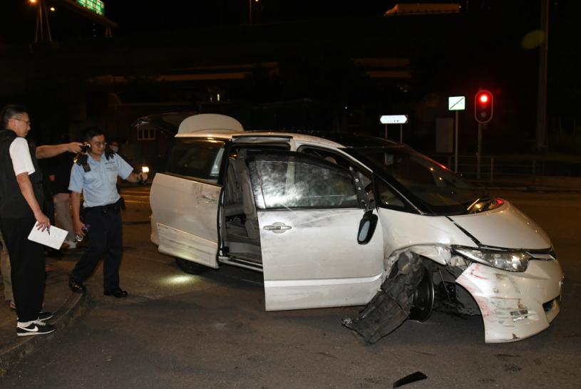 駛至沙田圍路與沙田路交界燈口時,白色七人車又重施故伎,撞向擋住去路的一輛Tesla私家車、一輛Benz私家車及一輛正在學習駕駛的「學神」私家車。李家傑攝
