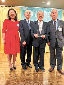 CBCAC頒發「終身成就獎」予李秉樞(右2),與創辦人陳增華( 右1)、主席吳常義(左2)、行政主任陳本恩(左1)留影。 梁敏育攝