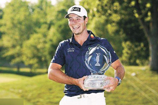 俄亥俄時間4日,鄧尼.麥卡錫兩次在18號洞失手,第一次在正賽中失去單獨領先,第二次在加洞中告負,挪威選手維克多.霍夫蘭(Viktor Hovland)因此在穆菲爾德山村贏得紀念高球賽,與東道主傑克.尼克勞斯握手。