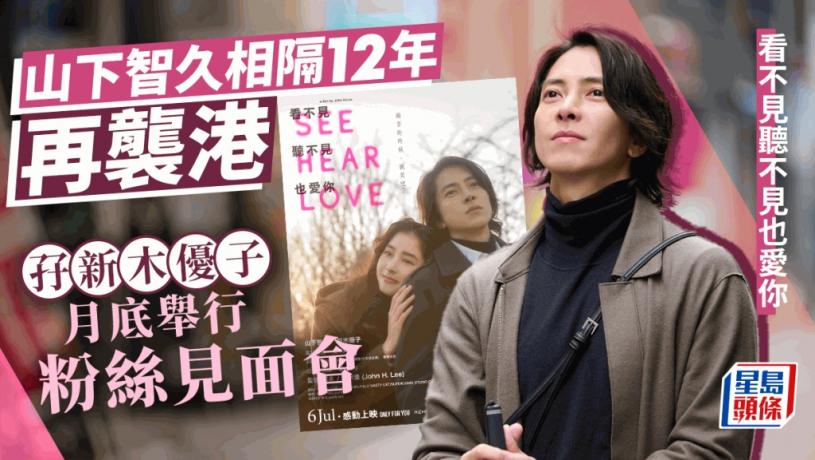 日本紅星山下智久在《今際之國的有栖》第二季,全裸客串演出人氣再度急升,演藝工作屢見突破的他,繼全英語演出美日法合拍劇《神之雫Drops of God》後,最新動向是再戰影壇,夥拍人氣女星新木優子合演唯美浪漫愛情電影《看不見聽不見也愛你》(See Hear Love)。