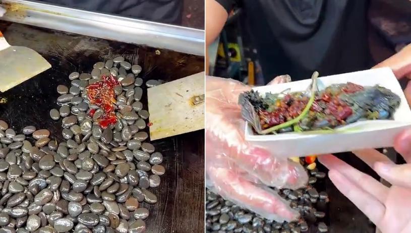 長沙夜市驚現16元一份的「爆炒鵝卵石」,拍攝者不禁問「能吃嗎?」