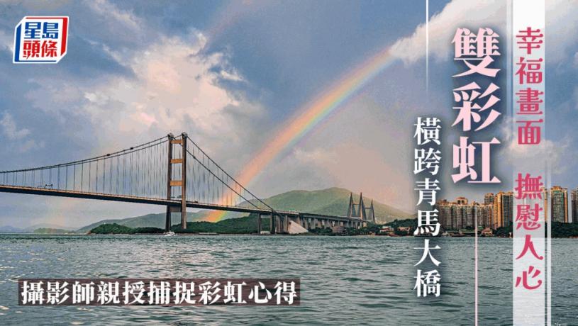 有網民在荃灣區拍攝到雙彩虹橫跨青馬大橋,並見到彩虹在海上消失的盡頭。拍到這絕美一幕的攝影師藍雨洋指,雙彩虹今早7時23分左右乍現,之前曾有驟雨。