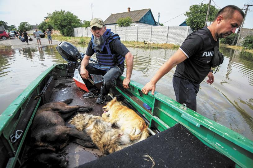 烏克蘭南部赫爾松俄軍控制區的卡霍夫卡水壩被炸毀引致決堤後,第聶伯河下游地區水位繼續上漲,有官員估計未來20小時,水位會再升高1米,淹沒下游沿河更多地區,至今已有約3000名居民撤離。俄方官員指,數以千計動物因而死亡。有烏克蘭軍官則表示,水壩潰堤後,有人看到俄羅斯部隊被洶湧的洪水沖走。
