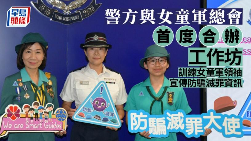 警方為加強向青少年宣傳防範受騙,與香港女童軍總會首次合辦「女童軍防騙滅罪大使」計畫,由警隊提供訓練內容及培訓導師,再由女童軍領袖負責在團隊內部進行訓練及考核,並頒發訓練章,首次領袖工作坊於前晚與行,80名女童軍領袖完成訓練後,將向其隊伍和親友推廣防騙滅罪知識,為維持社會秩序出一分力。