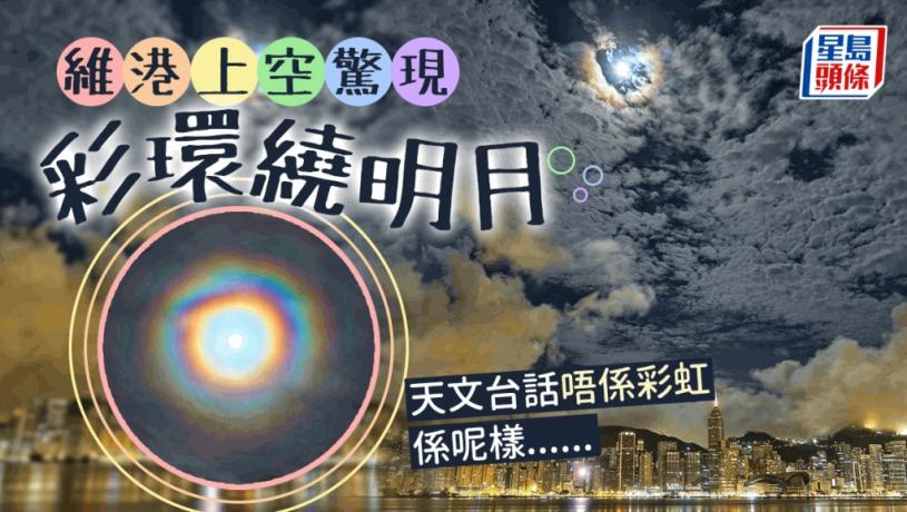 本港近日彩虹大平賣,FB被各區出現的彩虹洗版。日前晚上,維港上空更驚現「彩虹繞月」奇景,網友嘩聲四起,形容為「天眼」。