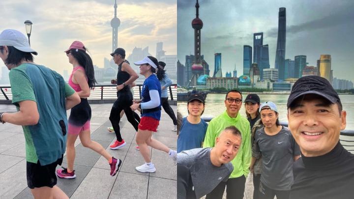 周潤發在上海出Trip期間都冇偷懶,日日6、7點便現身外灘晨跑。