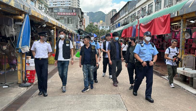 食環署與警方聯合行動打擊阻街違例店舖。劉漢權攝