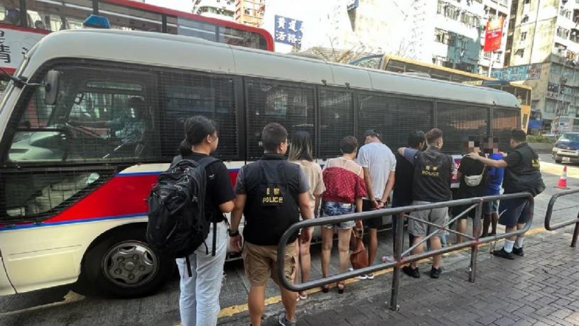 被捕8人當中,一名51歲非華裔男子涉嫌「經營賭博場所」被捕,另外兩名非華裔男子、一名持雙程證內地男子、2名本地女子及2名本地男子,年齡介乎32至46歲,則涉嫌「在賭博場所內賭博」被捕。其中一名37歲本地女子未有攜帶身份證明文件,亦涉嫌「未能出示身份證明文件」被補;當中一名32歲非華裔男子亦為被通緝人士。所有被捕人現正被扣留調查。