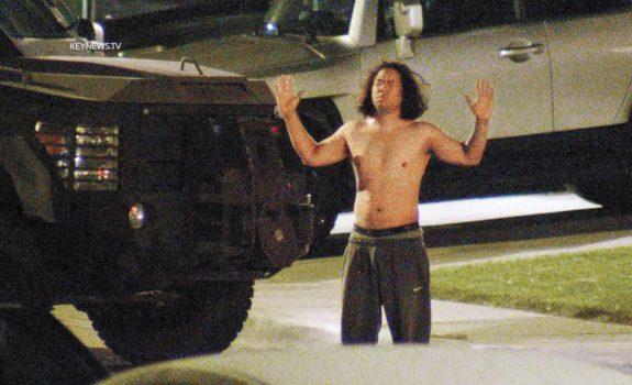 週一早上,經過長達數小時的對峙,鄰居被疏散,特警使用催淚瓦斯,薩拉查於當日凌晨 5時左右在棕櫚代爾住家外被拘留。