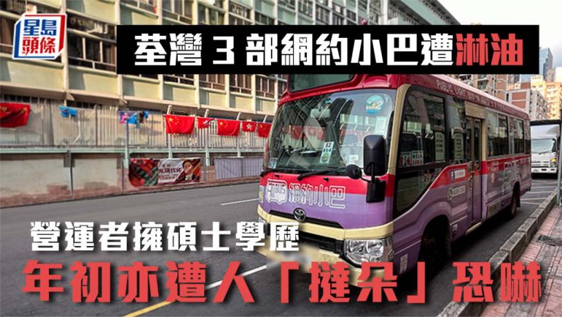 今日(22日)早上6時許,泊在福來邨永泰樓對開的3架網約小巴被淋油。
